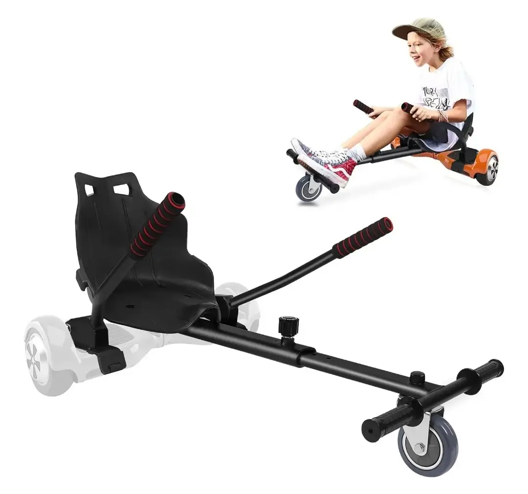 Transformá tu patineta eléctrica en un kart cómodo y divertido con esta silla negra. Su estructura metálica ofrece buena estabilidad, mientras que el asiento ergonómico brinda soporte y confort durante el uso. Es compatible con la mayoría de hoverboards de 6″ a 10″ y se instala de forma rápida y sencilla.
